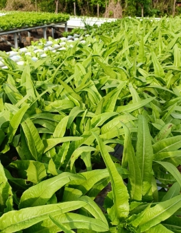 - Kangkung: Kangkung hidroponik lebih bersih dan bertekstur lembut. Sangat nikmat untuk dibikin tumis cah kangkung atau sesuai selera.